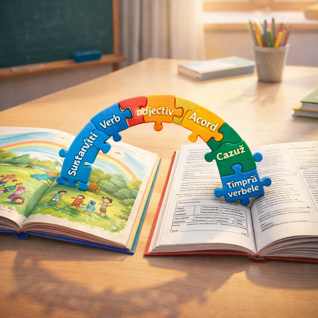 - Teoria Învățării prin Experiență (Learning by Doing):Puzzle-ul transformă conceptele abstracte (cum este genul substantivelor sau acordul adjectivului în franceză) în elemente tangibile. Manipularea pieselor angajează memoria kinestezică, consolidând conexiunile neuronale mult mai profund decât simpla memorare.