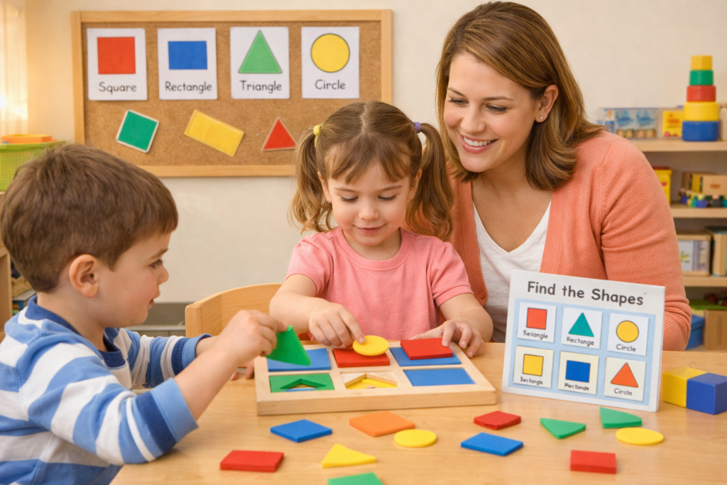PROIECT DIDACTIC – Jocul figurilor geometrice (localizarea şi relaţionarea unor elemente geometrice în spaţiul înconjurător; discriminarea unor forme geometrice plane: pătrat, triunghi, dreptunghi, cerc)
